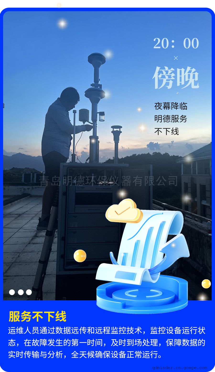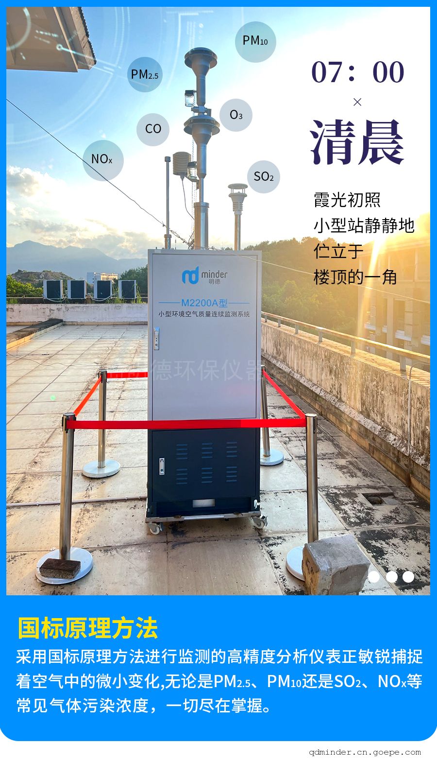从清晨到傍晚,明德小型站以其体积小、监测准的特性,成为了守护蓝天不可或缺的一部分。它既可以作为数据比对神器用于空气站选点的数据监测对比,也可为网格化环境空气质量连续监测提供体积小、精度高的解决方案。
