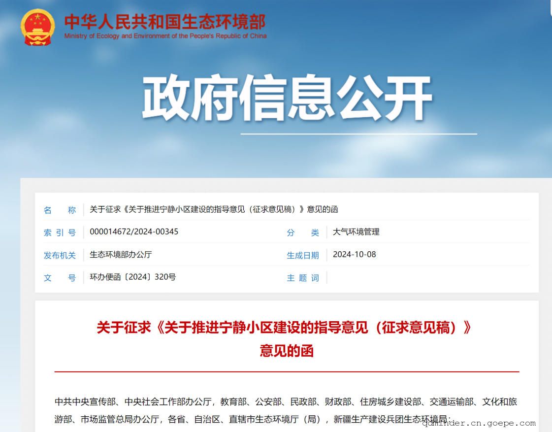 近日,生态环境部公布《关于推进宁静小区建设的指导意见(征求意见稿)》。征求意见稿中提到,将打造一批“消除杂音、睡得安心”的宁静小区,加大社会生活噪声源头防控和社会共治力度。
