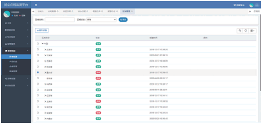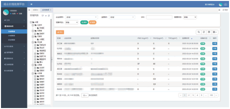 监测点数据表格化展示,支持多种方式排序,支持区域、监测点位等筛选,支持设备状态查看。
