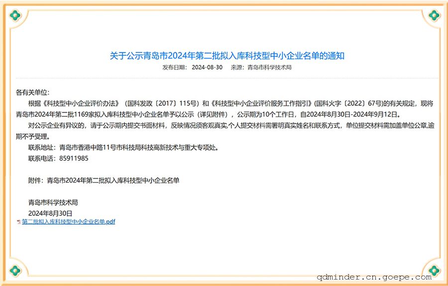 近日,青岛明德环保仪器有限公司先后通过2024年度青岛市雏鹰企业认定和入库青岛市2024年第二批科技型中小企业名单。这标志着青岛明德环保不仅获得了市场的积极认可,更展现出强劲的创新实力,凭借自主研发能力,在行业内崭露头角。